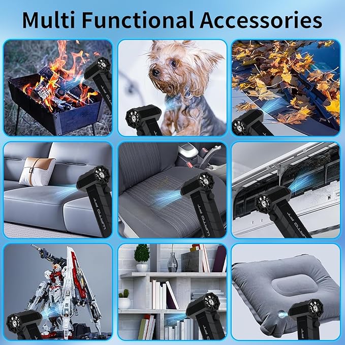 - 🔹【Versatile Cleaning with Brushes Included】 Equipped with different attachments to handle detailed cleaning of electronics, car vents, keyboards, sewing machines, and other sensitive surfaces.