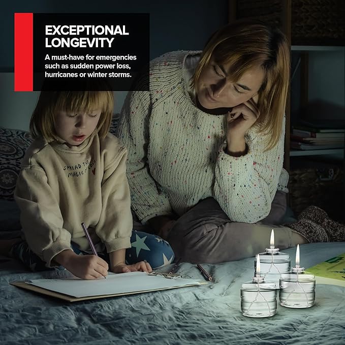 - Always Prepared: Be ready for anything; whether you're camping, experiencing a sudden power loss, hurricane or winter storm, our 100-hour emergency candles provide hours of light and warmth, ensuring you're never caught off guard.