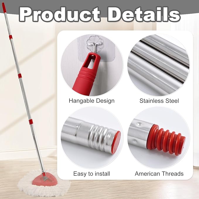 - High-Quality Customer Service: Each package contains 4-Section of Spin Mop Handle.If you have any questions about the product or are not satisfied with it after receiving the product, please feel free to contact us.Our professional customer service team will wholeheartedly serve you, provide you with the most satisfactory solution, and fully guarantee your shopping experience.