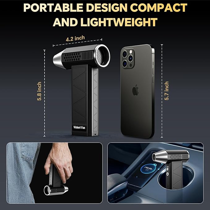 - ✅Metal Body & Portable Design: Featuring a solid metal body and nozzle for a modern, high-tech look, this mini air blower is built to last. Its ergonomic shape and cordless design make it lightweight, comfortable to hold, and easy to carry—just grab it from your pocket and dust in seconds.