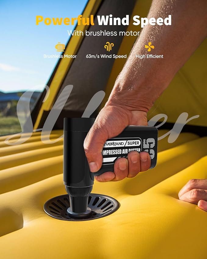 - 【Powerful Air Duster with High-Speed Motor】 Equipped with the latest high-performance motor spinning at 240000 RPM, this compressed air duster delivers a maximum blowing force of 250g (without nozzle) and around 130g (with nozzle). The strong airflow effortlessly removes dust and debris from your electronic devices and hard-to-reach areas.