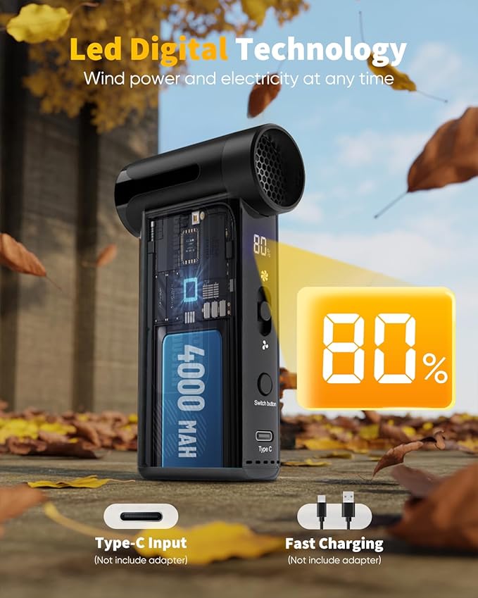 - 【Fast Charging & Long Battery Life】 Features a USB-C charging port that supports 10W fast charging. A full charge provides up to 240 minutes of continuous use. Eco-friendly and energy-saving, it’s a reusable alternative to disposable air cans. Note: Please use a 5V/2A charger to ensure proper charging.