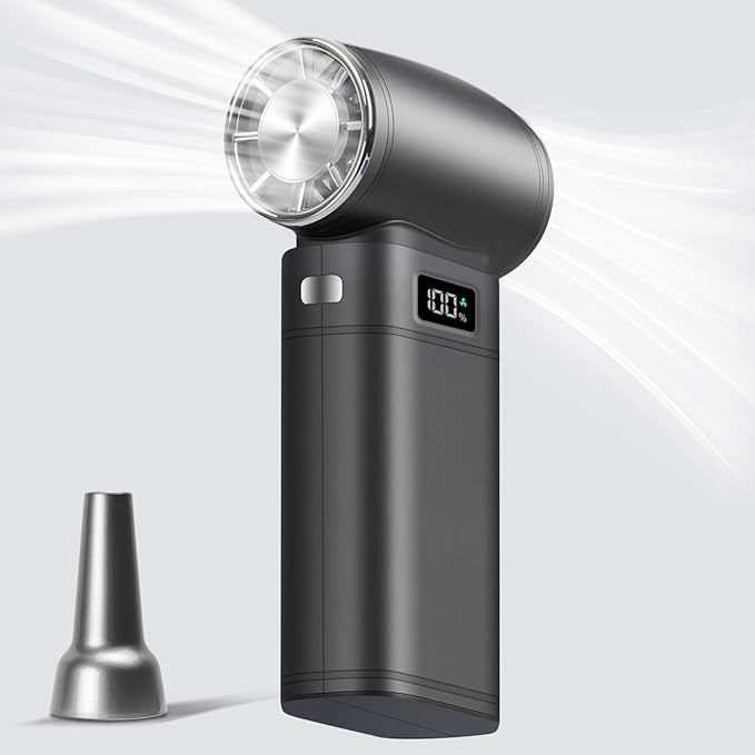 - â ăAll-in-One: Cooling, Drying, Cleaning & InflatingăTurbo jet fan beyond cooling.More than just a fan! Use jet airflow to clean dust, dry clothes, inflate air pillows, or cool down quickly. Comes with a nozzle for precise targeting. Ideal for tents, car seats, keyboards, cameras, or home use for daily life or outdoor adventures.LED light illuminates dark spaces for nighttime camping and backcountry hikes.