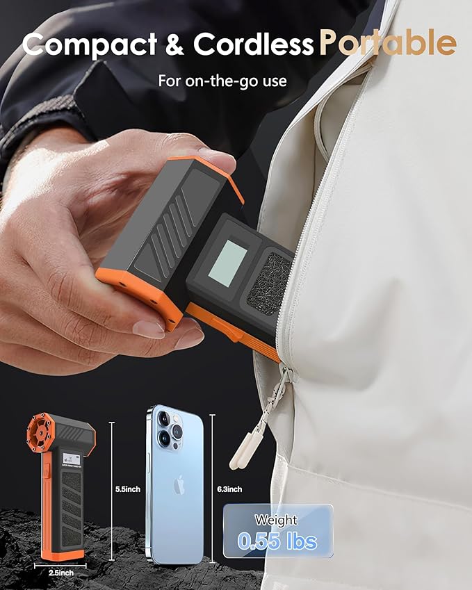 - ๐๐ฎ๐ซ๐๐๐ฅ๐, ๐๐จ๐ซ๐ญ๐๐๐ฅ๐ & ๐๐๐จ๐ง๐จ๐ฆ๐ข๐๐๐ฅ ๐๐๐ฌ๐ข๐ ๐ง: Weighing only 0.55 lbs, this compressed air duster fits easily into backpack, glove compartment, or toolkit for on-the-go use. Crafted from premium ABS and TPE materials, it houses a long-lasting rechargeable battery (500+ cycles) that saves hundreds of compressed air cans, making it a cost-effective investment for homes, garages, and professionals.