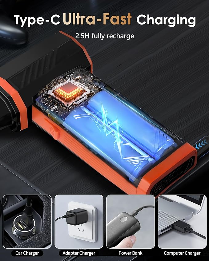 - ๐๐๐๐ก๐๐ซ๐ ๐๐๐๐ฅ๐ ๐๐๐ญ๐ญ๐๐ซ๐ฒ & ๐ ๐๐ฌ๐ญ ๐๐ก๐๐ซ๐ ๐ข๐ง๐ : The electric air duster built-in large-capacity battery that provides up to 40 minutes of continuous runtime (lowest speed). Fully recharges in 2.5 hours, and enjoy the convenience of USB Type-C fast charging (compatible with phone chargers, power banks, car adapters, etc.). The LCD screen displays real-time battery life and speed settings for peace of mind.