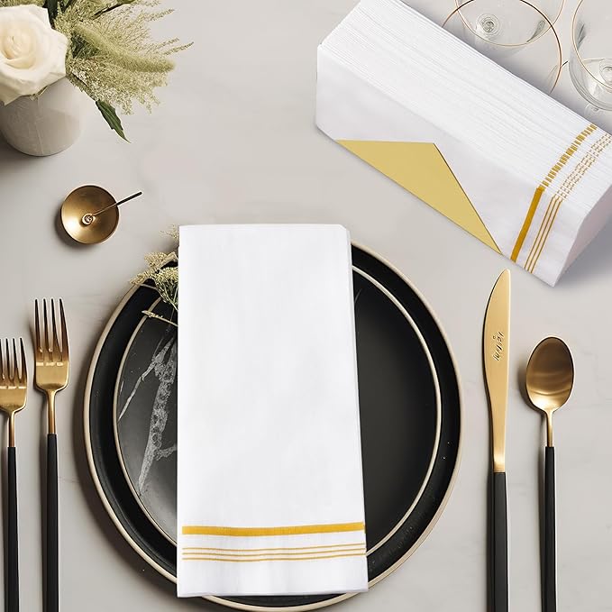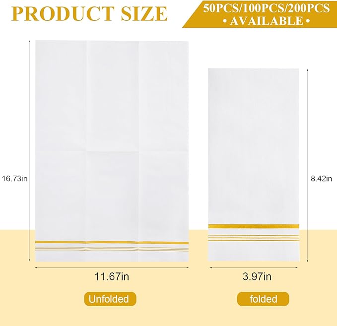 - Perfect for Special Occasions or Large Gatherings: These elegant, disposable hand towels feature a sophisticated gold line print. These decorative disposable napkins also are the best choice for cocktail parties, anniversary, wedding, birthday party, wine tasting, bridal shower, baby shower and family gathering party.