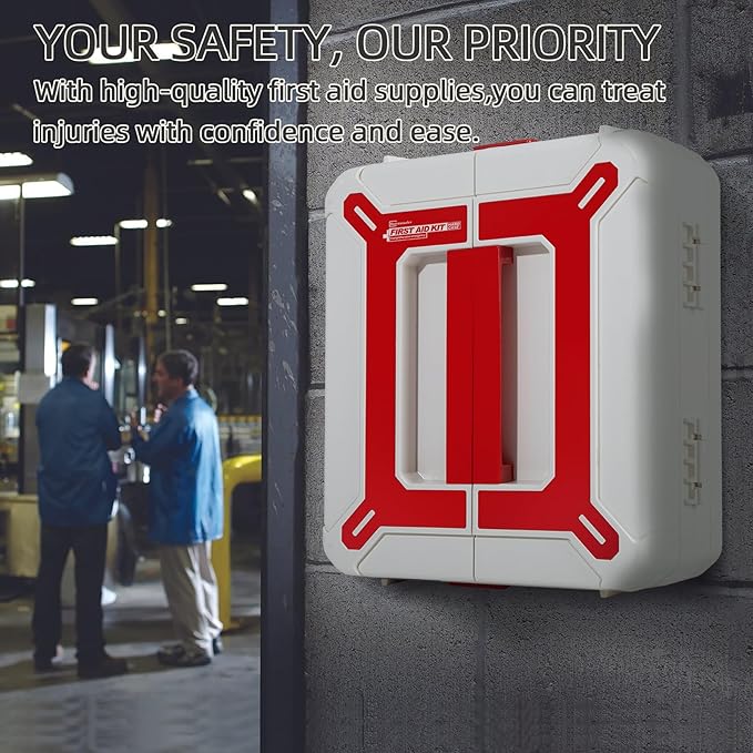 - 【Flexible Mounting & Portable Design】Offering versatile installation options, the trauma first aid kit can be wall-mounted for easy access or with handle carried to any location, adapting to your workplace’s specific safety requirements. Its portable and accessible design ensures readiness wherever emergencies arise, combining convenience with reliable preparedness.