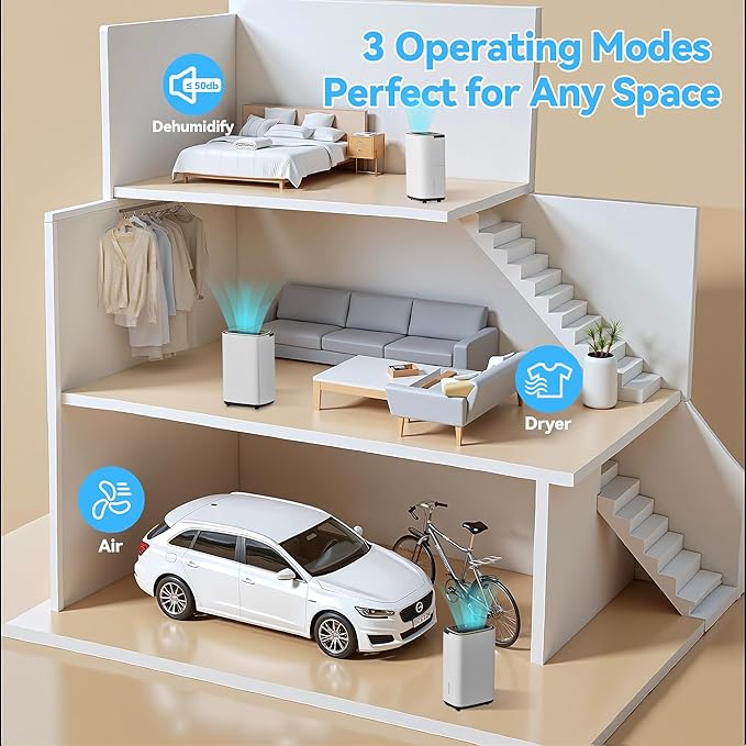 - ใ๐ญ๐๐๐ & ๐ฌ๐๐๐๐๐๐๐๐ ๐ช๐๐๐๐๐๐ ๐ซ๐๐๐๐๐ใTired of damp laundry? Our dehumidifier doubles as a speedy dryer, slashing humidity from 85% down to a cozy 35%โperfect for freshening clothes indoors! With a strong 300-360 CFM airflow, it circulates air efficiently, reducing drying time without heat damage. No more musty smells or endless waitsโjust soft, dry clothes faster, even on rainy days!