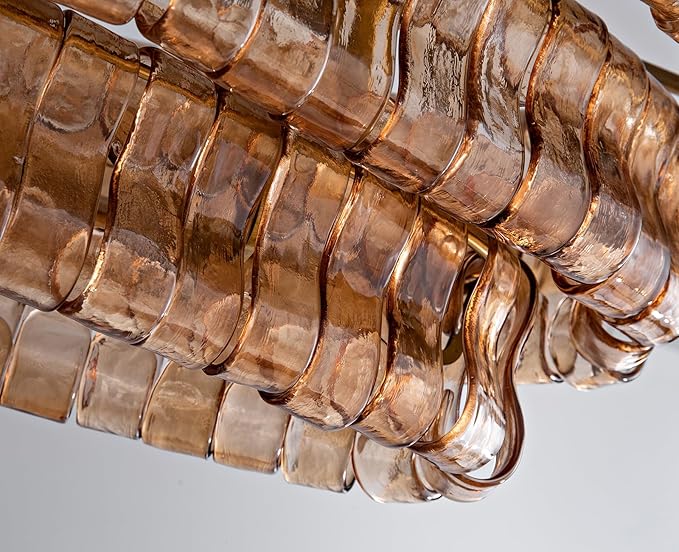 - 【Large Chandelier】The golden round chandelier in the restaurant adopts a unique amber glass design. The modern chandelier shade is made of layered glass, all amber glass polyhedrons are suspended on a metal frame circle, combining with the room decoration to create an elegant and luxurious atmosphere.The drum chandelier for living room,dining room