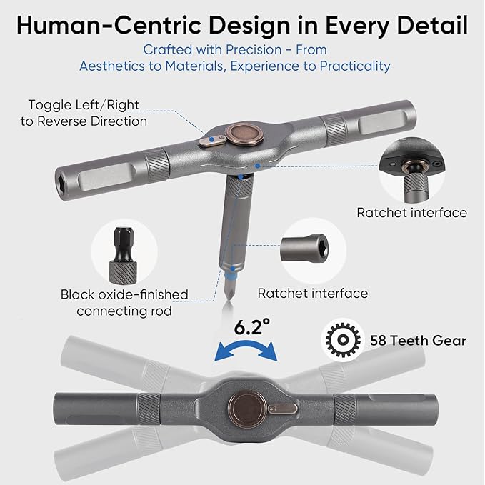 - 【Multifunctional Ratcheting Wrench & Screwdriver】58-tooth bidirectional ratchet design (forward/reverse) for effortless screw control. Durable S2 steel bits + forged 6063 aluminum alloy handle withstand high torque demands. Ideal for automotive repairs, motorcycle maintenance, and crafts.