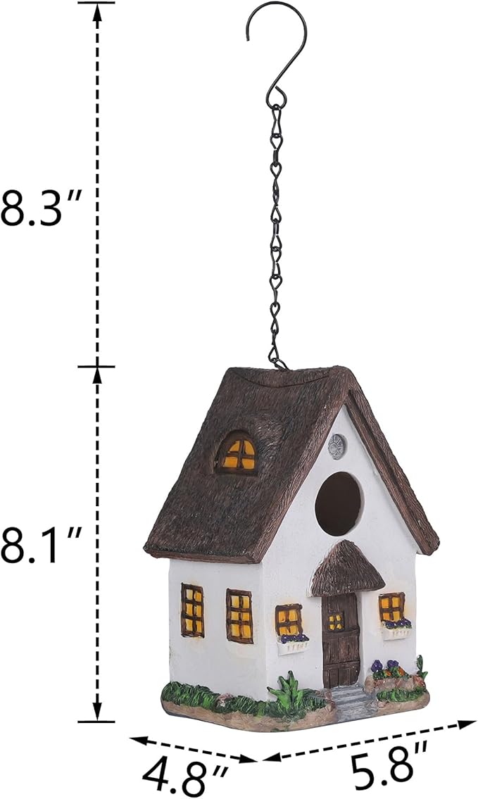 - Ready to Hang: Equipped with a sturdy hanging chain hook, this bird house can be effortlessly hung from tree branches, or pergolas. Its lightweight design makes it convenient to reposition, allowing you to find the perfect spot to attract birds in your garden