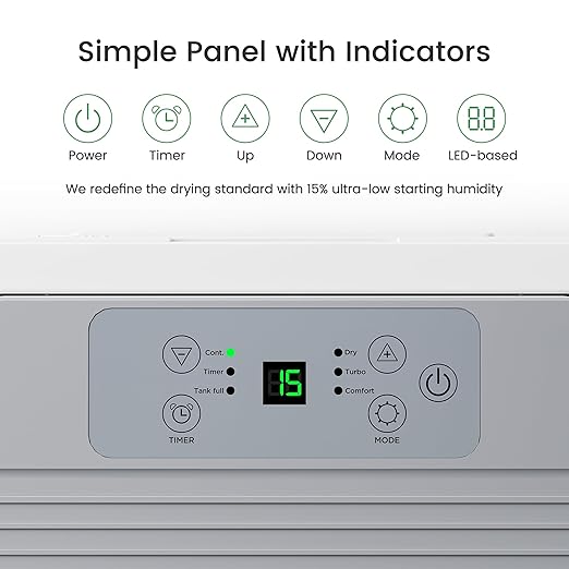 - 【Ultra-Wide 15% RH Control for Deep Drying】 Set humidity as low as 15% in Continuous Mode—far below typical models that bottom out at 30%. Well-suited to ultra-damp basements, damp closets, and humid laundry rooms, it delivers deeper, faster drying. Also ideal for protecting valuables like instruments, documents, and electronics that need precise humidity control. Whether after heavy rain or for year-round comfort, enjoy full control for a drier, healthier indoor environment