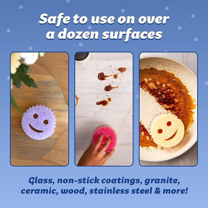- Safe for Over a Dozen Surfaces - These versatile sponges are safe to use on non-stick coatings, stainless steel, glass, cast iron, chrome, and more. Whether you’re cleaning cookware or wiping sneakers, Scrub Mommy won’t scratch or damage surfaces.