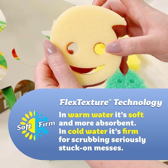 - Dual-Sided Non-Scratch Design - Each sponge features Scrub Mommy’s FlexTexture side that firms in cold water and softens in warm, plus a ResoFoam side that creates a rich, soapy lather, ideal for tackling dishes, countertops, and household messes.