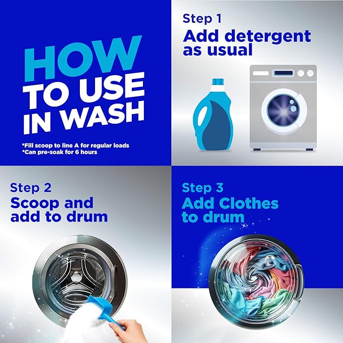 - 3X STAIN FIGHTERS vs. leading value detergent alone per load; use this laundry additive in every load to remove stains; at home on surfaces like grout, upholstery, carpet, and patio furniture; with 101 cleaning and stain-fighting uses for home and laundry