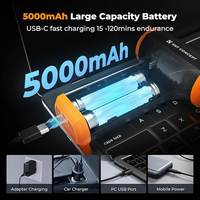 K&F Concept Compressed Air Duster, 3 Gear Adjustable 110000RPM Electric Air Duster, Adjustable&Portable Air Blower for Deep Computer Clean, Keyboard, Car Dry, Home - Replace Compressed Air Cans