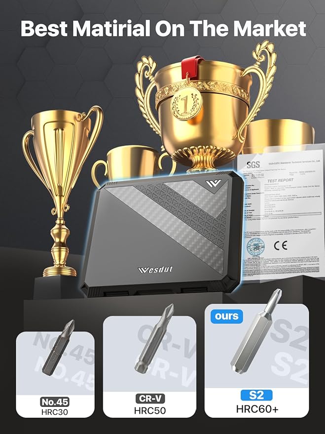 - [S2 Alloy Steel Bits – Built to Last] The bits are made of S2 alloy, processed through 1000℃ high-temperature forging and -80℃ low-temperature quenching, resist abrasion, oxidation and corrosion, ensure long time use. No more stripped screws, no more worn-out tools.
