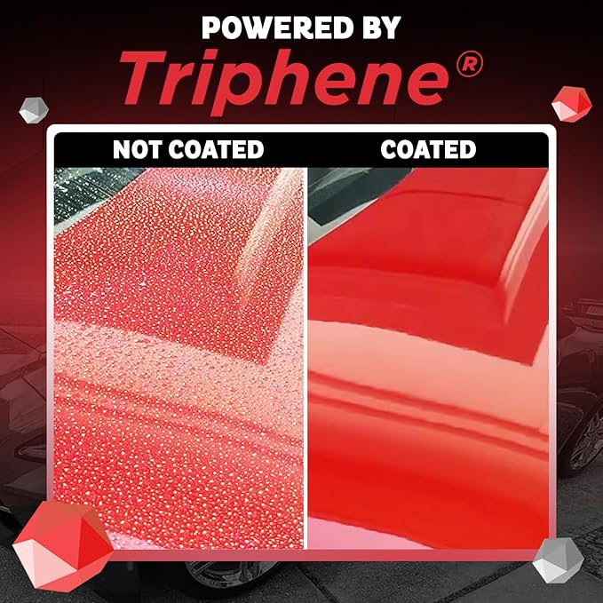 - Apply MAXEasy Triphene Instant Coating in seconds, just spray, rinse, and dry. This advanced maxl spray coating triphene instantly bonds to paint, trim, and glass, delivering a rich gloss and long-lasting hydrophobic protection. It's the perfect addition to any car wash kit or motorcycle cleaning kit for quick, durable shine.