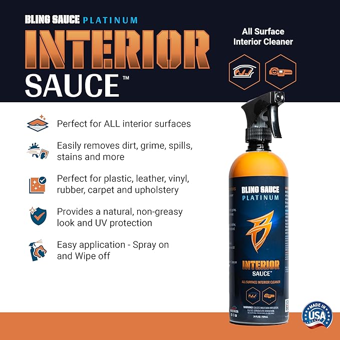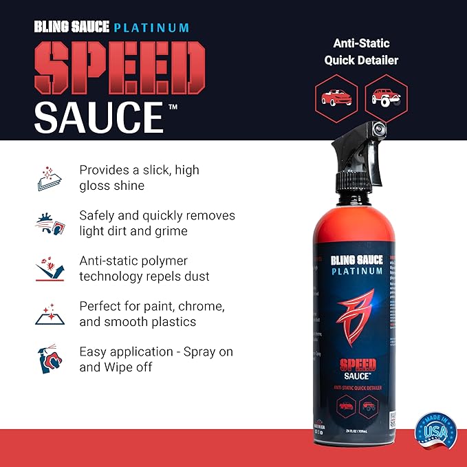 - 8 Must-Have Detailing Products in One Kit – Includes Speed Sauce, Interior Sauce, Tire Sauce, Wheel Sauce, Fusion Sauce, Secret Sauce ceramic coating sample, microfiber towels, and an interior sponge.