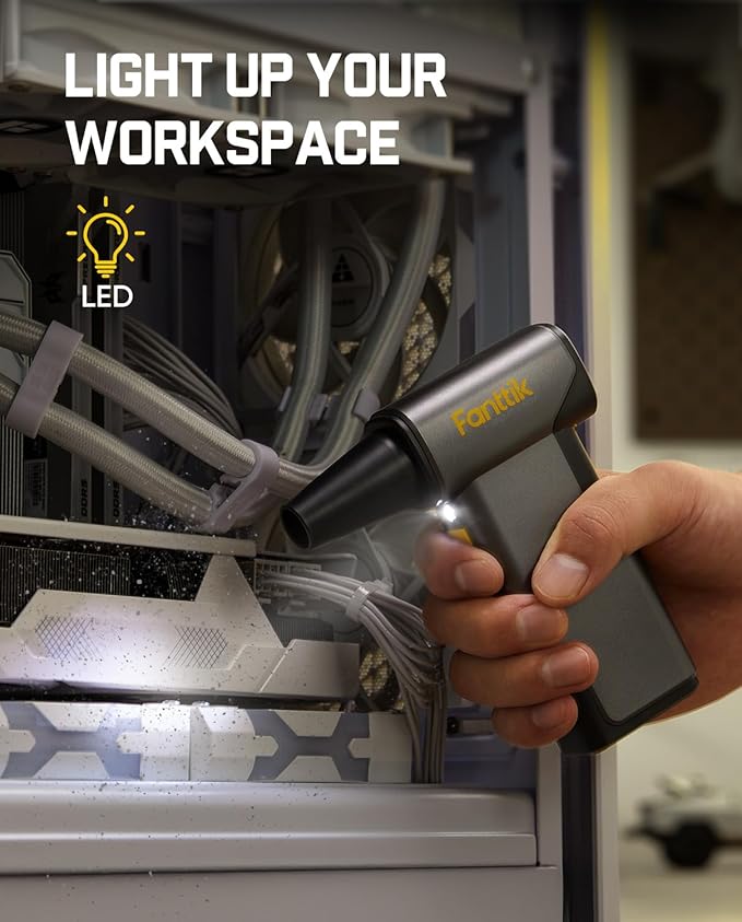 - Display and Illumination: The bright LED display keeps you updated on battery life and speed settings at a glance. Need air dusting in hard-to-see PC corners? Switch on the built-in LED light to reveal hidden dirt and keep every spot spotless