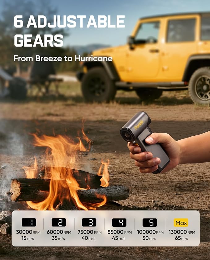 - Powerful Performance: Whether it’s dust in electronic devices, particles on a workbench, or grit in modular keyboards, Fanttik air duster’s 130000 RPM brushless motor does it all. With 6 levels, this cordless air duster goes from light dust removal to high-speed cleaning at 65 m/s. Need instant power? Activate MegaBoost One-Tap Booster for a burst of airflow