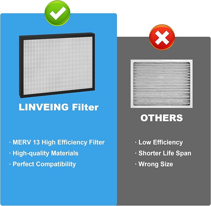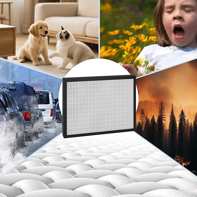 - 【MERV-13】 MERV13 protects homes from pets, pollen, and more by removing at least 95% of airborne particles! The high-efficiency MERV 13-rated replacement air filter removes most particles, smoke, fibers and pet dander, Improving the air quality in your home or office