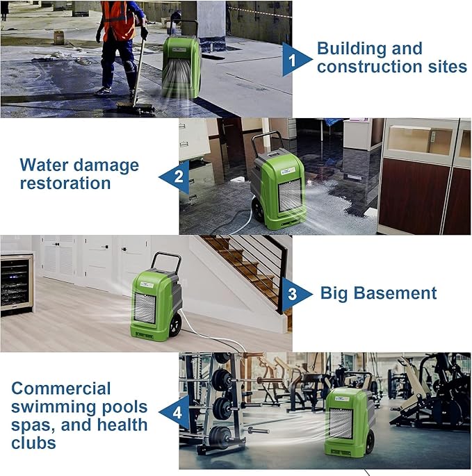 - ✔【Rotomolded Durability】 Impact-Resistant & Warp-Proof Dehumidifier: The rotational molding process gives this commercial grade dehumidifier notable structural advantages. Compared to traditional sheet metal craftsmanship, its housing is more robust and durable, with exceptional impact resistance. The unit resists deformation or bending, enabling reliable operation in diverse challenging environments for long-term performance.