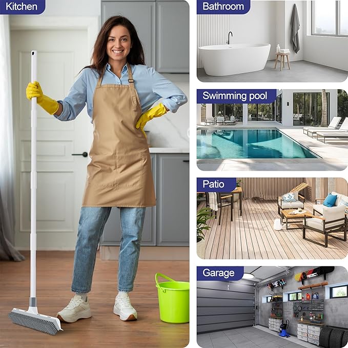 - Versatile Use: Our floor brush can be widely used to scrub tiles, hardwood floors, vinyl floors, marble floors, and concrete floors — perfect for indoor/outdoor use in bathrooms, kitchens, showers, tubs, garages, patios, decks, pool areas, and sidewalks