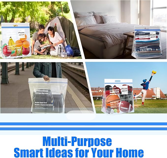- Generous Capacity: Constructed from 3 mil thick clear plastic. 25-gallon jumbo storage bags perfect for organizing large items, seasonal clothing, bedding, and household essentials with ample space