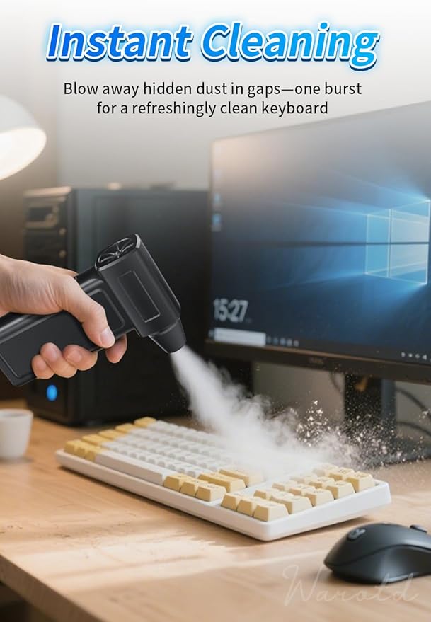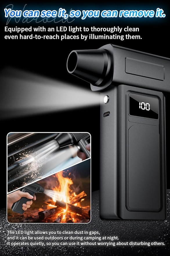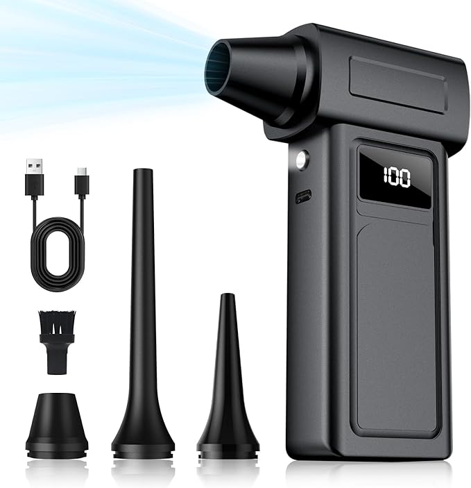 - 🔹【200,000 RPM Turbo Cleaning Power】 Built with a high-performance brushless motor, our electric air duster reaches up to 200,000 RPM and delivers air speeds up to 45m/s. Easily blast away dust, debris, and particles from keyboards, PCs, laptops, and more.