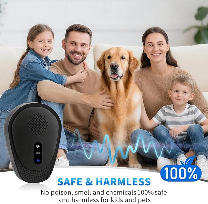 - All-around Protection: Ultrasonic waves are safe for humans and pets, no pungent odor, an environmentally friendly alternative, no need to use harmful chemicals.