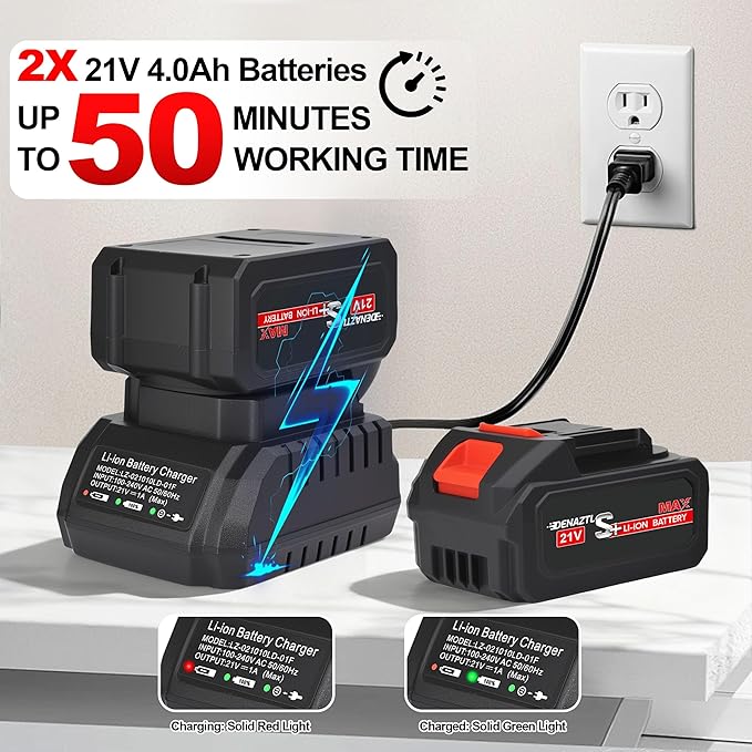 - 【Dual-Battery Runtime - Smart Power Management】Handheld leaf blower Includes two 4.0Ah li-ion batteries, each one providing 25 minutes of powerful airflow, (35 minutes in low speed). By alternating between the two batteries, you get 50 minutes of total runtime to clean your yard,garden,lawn,gutter more efficiently !