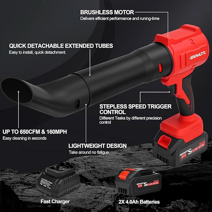 - Color : 650CFM 160MPH+ 2Batteries+Fast Charger+Extended Nozzles-BRIGHT RED