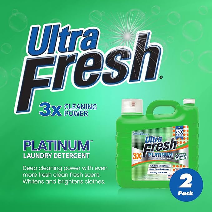 Ultra Fresh 2 Pack 3X Platinum Liquid Laundry Detergent up to 320 Loads, Original Green - Deep Cleaning Power and Fresh Scent for Washing Clothes