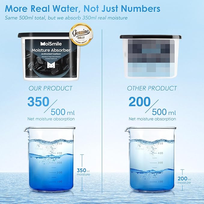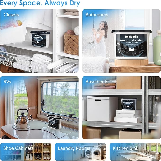 - Zero-leakage: Designed with three layers of waterproof paper, Moismile moisture remover for car ensure 100% leak-proof performance. Moisture stays locked inside even if tipped or shaken—perfect as a charcoal odor absorber for car or car moisture absorber for vehicles, closets, and bathrooms.Note: Do not remove the waterproof paper. Just peel off the aluminum foil seal before use.