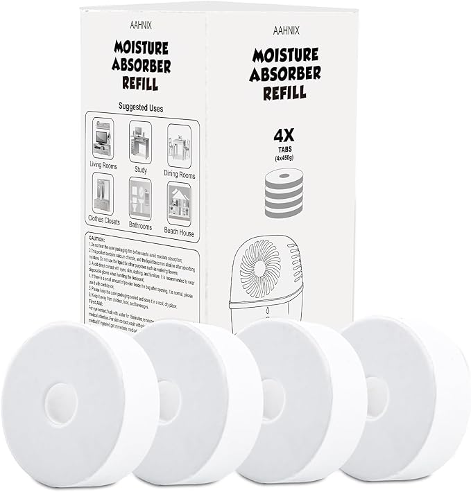 pack of 4, humidity absorber Refills Tablets, 15.9oz-4"H×1.6"W mini dehumidifier Tablets – Moisture Absorber Prevents Excess Moisture And Fragrance Free