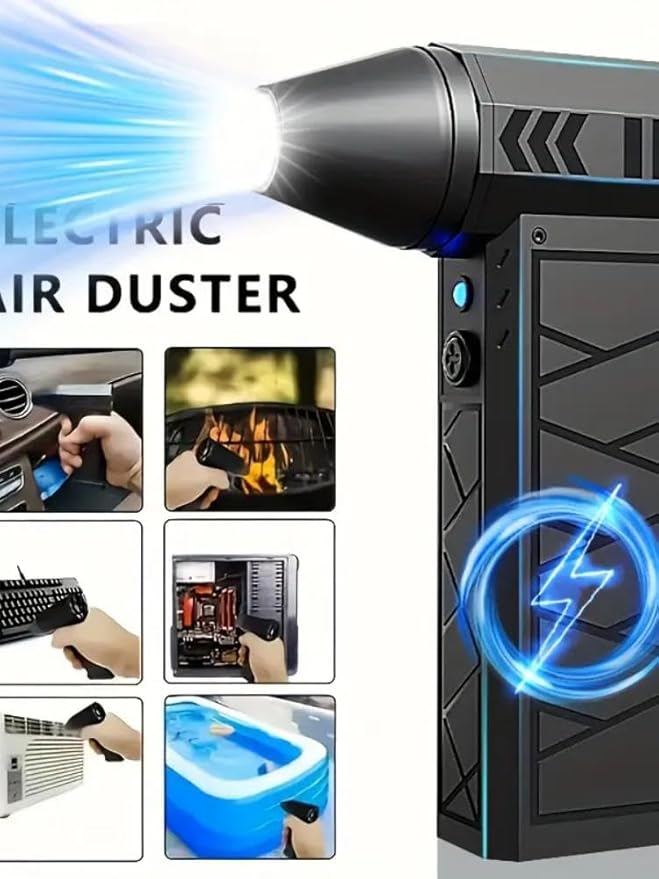 - 【Multi-purpose Electric Air Duster】 Offering 4 adjustable airflow settings, this turbo fan air blower is versatile for various cleaning needs, from low to high wind speeds, ideal for keyboards, cameras, car seats, blinds, barbecues, inflating swimming rings, garden leaves, and even blow-drying a puppy’s hair