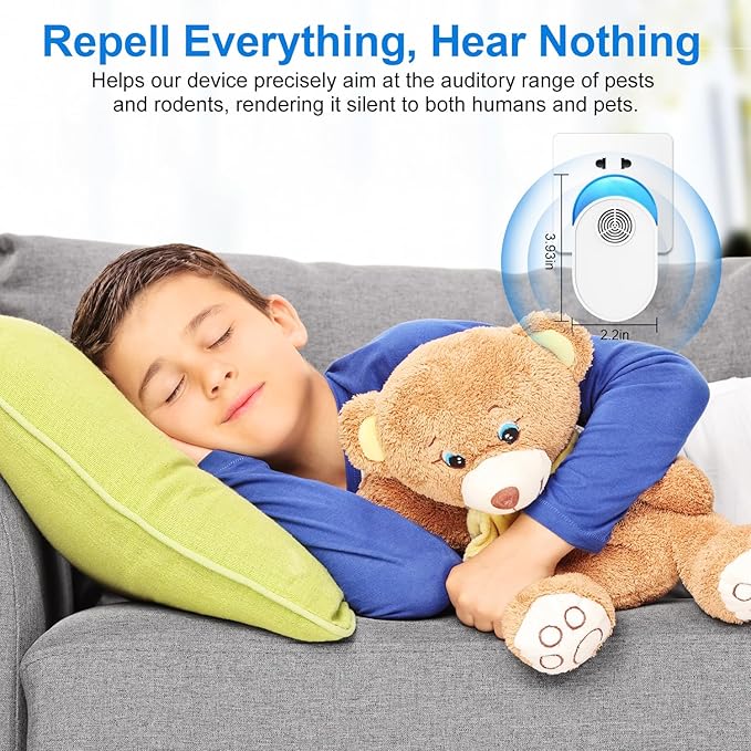 - Safe for Families & Pets:Silent operation ensures zero risk to humans, children, or pets. No toxins, traps, or odors—just peaceful, eco-friendly pest control.