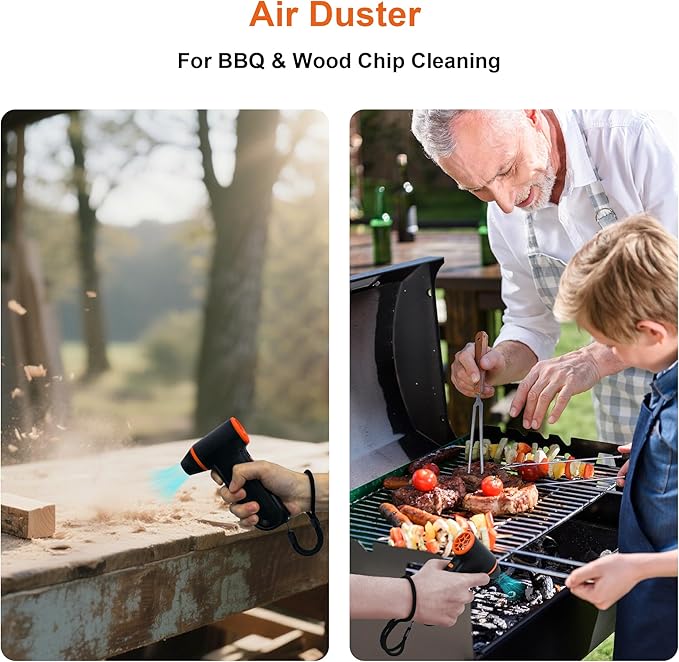 - Versatile Cleaning air Duster:Equipped with 4 cleaning nozzles and 2 cleaning brushes, suitable for different scenarios, it can be used to clean computers, keyboards, office desks, and can also be used for outdoor activities and cleaning cars. It's also great for inflating gear or managing campfires.