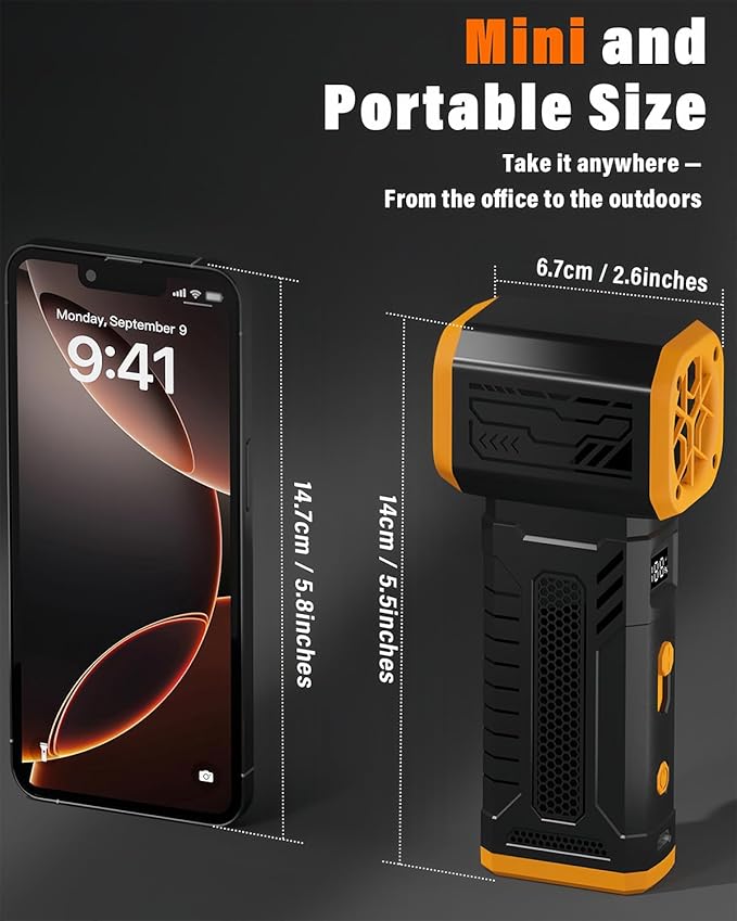- [ Powerful Turbine Force, Low Noise and High-Speed Cleaning Experience ] - This Mini air blower is equipped with a low-noise, high-speed brushless motor running at 130,000 RPM, generating a wind speed of over 55m/s and wind pressure up to 160G. It easily blows away accumulated dust and can even be used for inflating air mattresses, vacuum suction, and campfire boosting—truly versatile. Its performance far surpasses traditional compressed air cans.