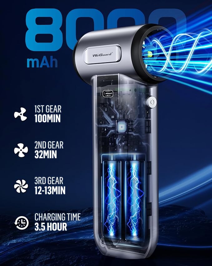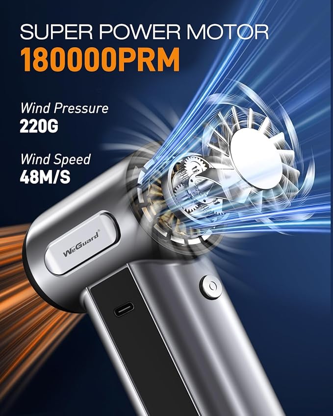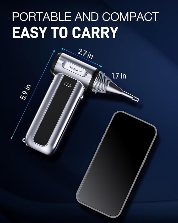 WeGuard W22 Compressed Air Duster, 180000RPM Cordless Electric Air Duster with Brushless Motor - Rechargeable & 3 Speed Adjustable - Dust Cleaner for Keyboard, Computer, Outdoor, House and Car