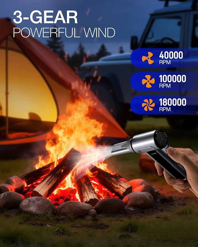 - Versatile Cleaning Tools: The duster cleaner is equipped with 4 Nozzles, 1 brush and a storage bag. It’s suitable for cleaning electrics like PCs and keyboards, car mirrors, vents, sofa crumbs and more. Beyond cleaning, this versatile air blower is able to blow leaves, blow snow, inflate airbeds, manage campfires, making it a must-have for multiple scenarios.