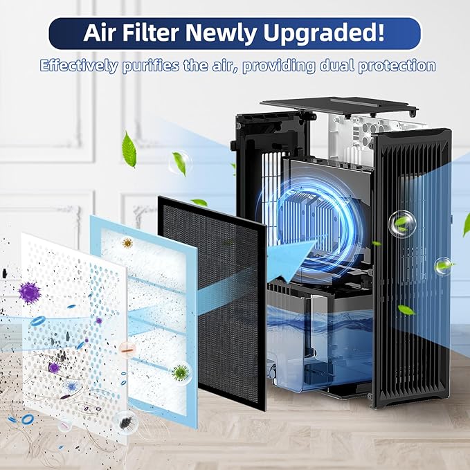 - 【Removable & Washable Filter】Dehumidifiers for home upgraded washable filter effectively blocks 99.99% of common airborne contaminants such as dust and pet hair, preserves air quality without expensive replacement parts. At a same time, removable filter keeps the dehumidifier's interior clean, facilitating regular cleaning and improving air circulation. KeepGlad dehumidifier creates a dry, comfortable, and healthy indoor environment by reducing humidity and improving air quality.