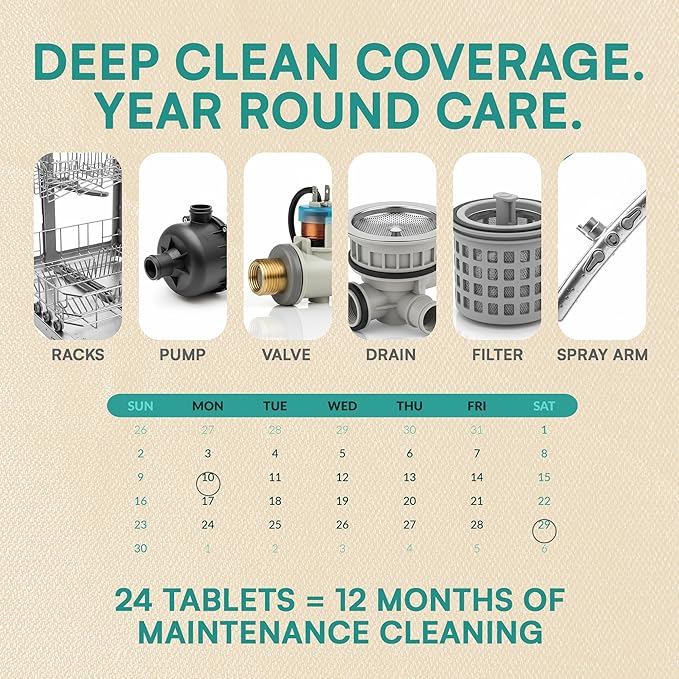 Dishwasher Cleaner and Deodorizer Tablets - 24 Pack Deep Clean Dishwasher Cleaning Tablets, Heavy Duty Streak-free Shine Dish Washer Cleaner, Natural Descaler and Odor Eliminator 12 Month Supply