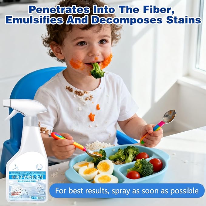 - [Non-ionic Emulsification]: Laundry cleaner spray is formulated with non-ionic emulsification, designed to effectively remove tough stains and bad smell from clothes to penetrate deep into fabrics to ensure a clean. Such as cooking, working, party, camping and other sudden stains,allowing you to get rid of the embarrassment of dirty clothe