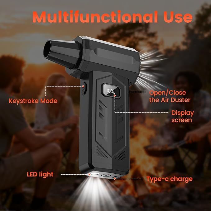 - 【Led Display Screen & Light】This electric air duster come with Led display,it can shows the real-time power and gear level.The light can be switched High/SOS mode in one click,which allow you use it in need.