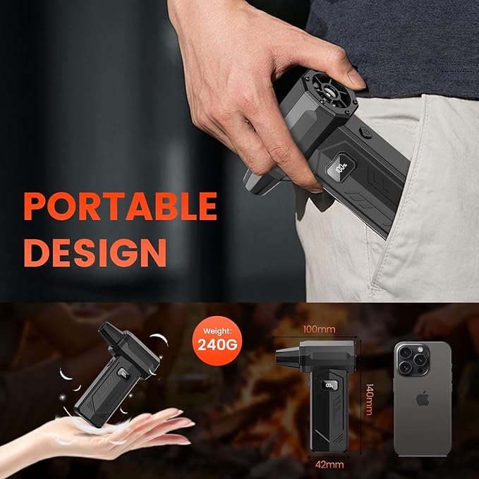 - 【Portable and Versatile】Mini air blower weighing 240g. The electric air duster is lightweight and easy to carry. Jet fan is ideal for cleaning desktops and keyboards, drying pet hair, home clean, car clean etc.Turbo fans also useful for outdoor activities ,such as picnics and fire-starting.