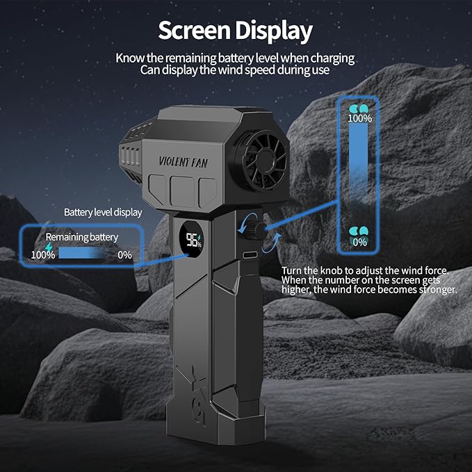 - Displayed Screen and LED Illumination: Equipped with LED illumination, the compressed air duster help you see clearly to facilitate your cleaning in dark places or at night. The displayed screen can display the magnitude of wind force and can also display the battery level of the electric air duster during charging.