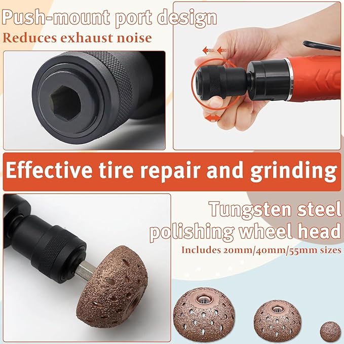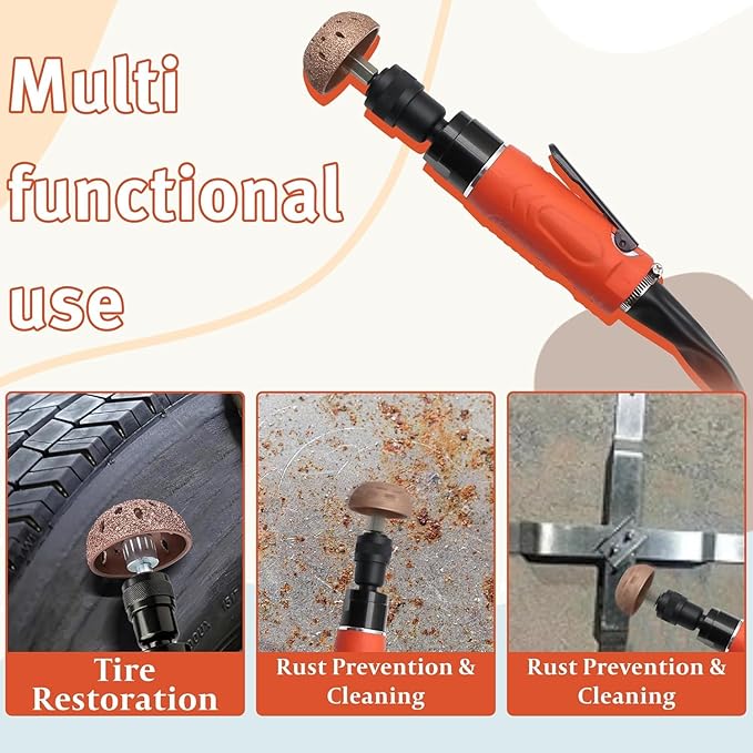 - 【Low-Speed Pneumatic Design】 Built for controlled rubber surface preparation in garage and workshop environments, supporting steady handling during tire-related maintenance tasks