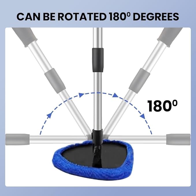 - Auto Windshield Cleaning Tool: Designed with a 180° rotating head, this auto windshield cleaning tool easily reaches tight corners, dashboard edges, and car interiors for a thorough clean. Ideal for quick touch-ups or deep cleaning, it provides full coverage for windshields, mirrors, and windows